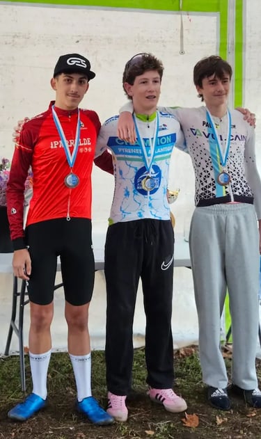 Dimanche 9 novembre, nos 2 jeunes recrues, Pierre Vergne et Alban Alvarez ont été engagés sur le championnat départemental de cyclocross à Arjuzan. Alban remporte la médaille d'argent offrant ainsi au Team Iparralde sa première médaille sur cette discipline! Bravo à eux!